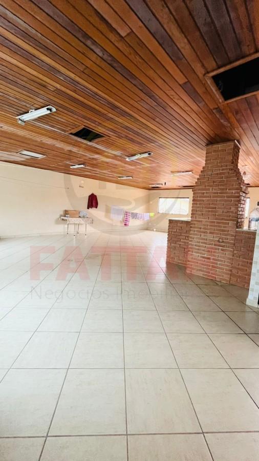 Na parte superior, há um salão amplo perfeito para festas e momentos de lazer com família e amigos, equipado com churrasqueira.