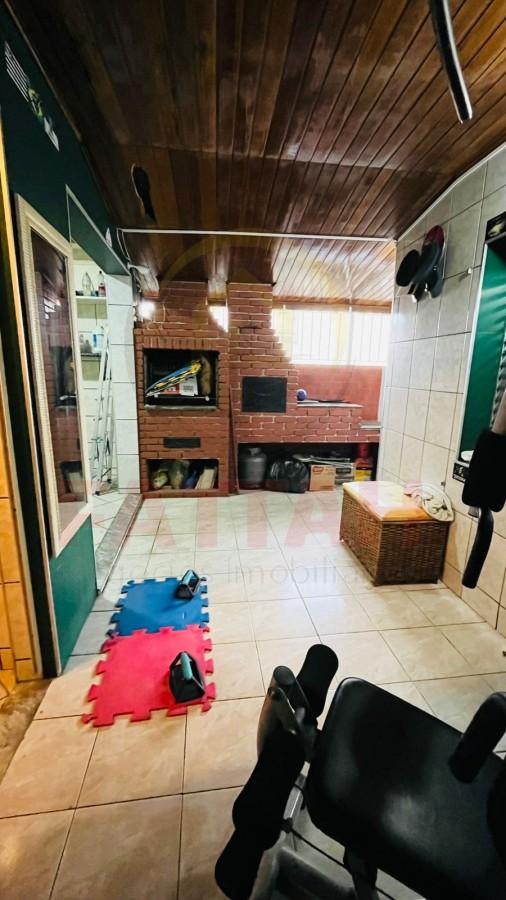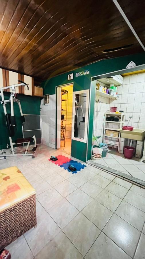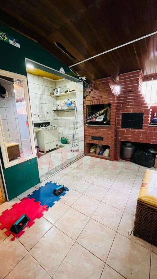 Com vaga para 2 carros, corredor lateral, sala de estar, cozinha com armários, 2 quartos e banheiro social, nos fundos tem uma área gourmet com churrasqueira, fogão a lenha, e um cômodo com banheiro.